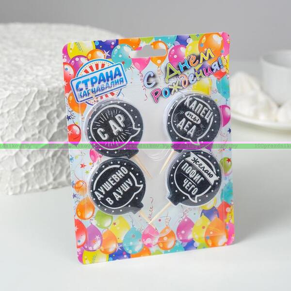 Набор свечей в торт "Мужские", 4×4,4см, 4 шт