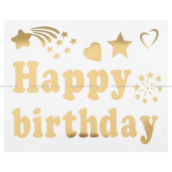 Наклейка на полимерные шары «С днём рождения», печатные буквы, цвет золотой