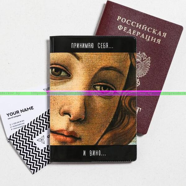 Обложка для паспорта "Принимаю себя и вино внутрь" (по 1 шт)
