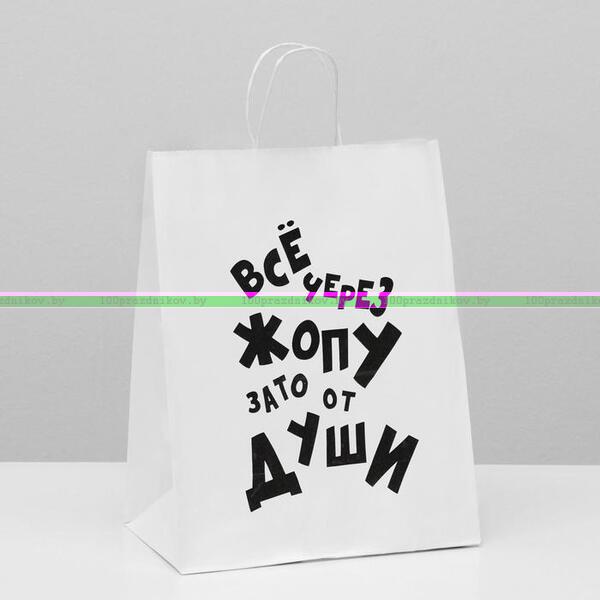 Пакет подарочный с приколами, крафт «От души», белый, 24 х 14 х 30 см