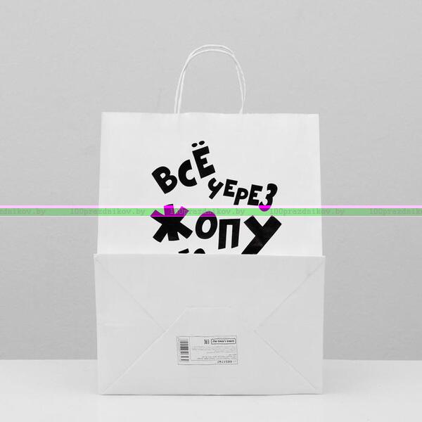 Пакет подарочный с приколами, крафт «Старушка», белый, 24 х 14 х 30 см