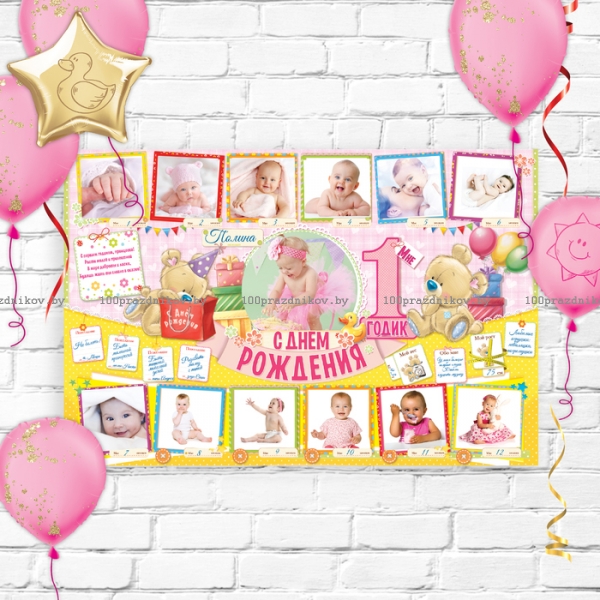 Свеча для торта цифра «1 годик, девочка» "1" розовая