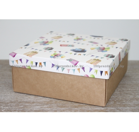 Подарочная коробка самосборная с цветной крышкой с белым дном. Крышка коробки ламинированная и стойкая к истиранию.