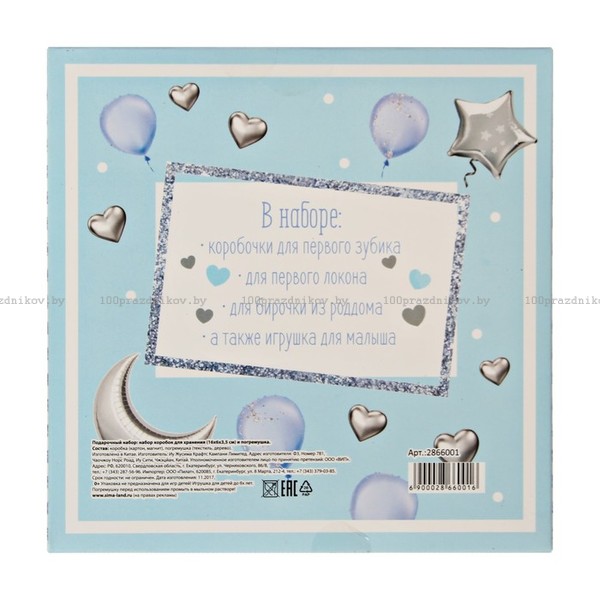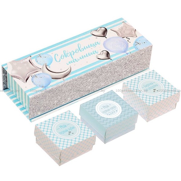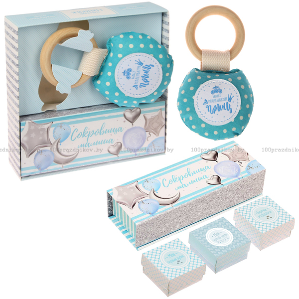 Подарочный набор "Наш маленький принц": набор памятных коробочек и погремушка