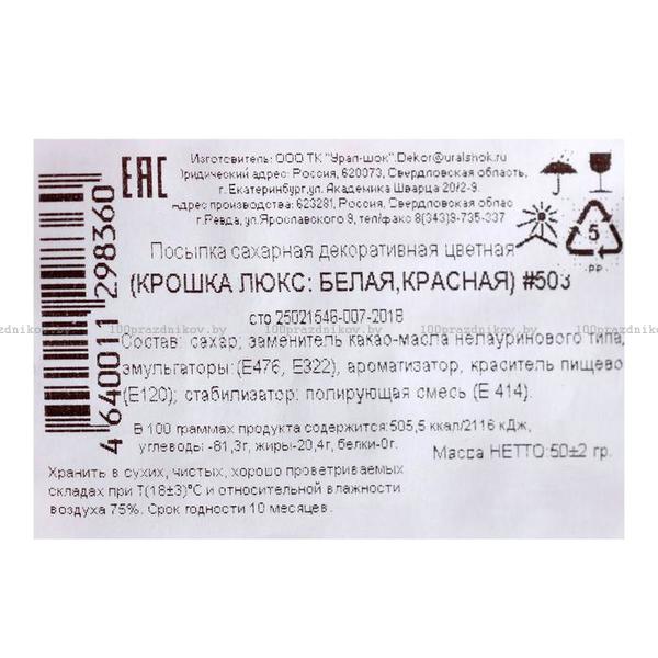 Посыпка декоративная цветная «Крошка Люкс», белая/красная, 50 г