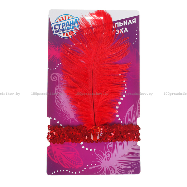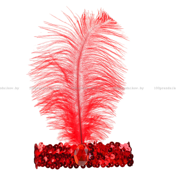 Повязка на голову, с пером, цвет красный