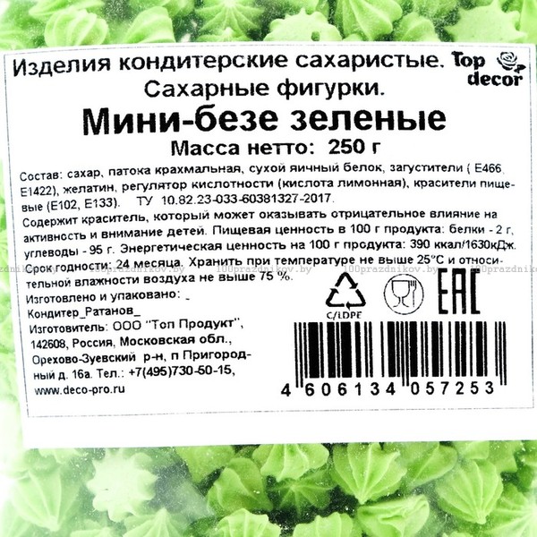 Сахарные кондитерские изделия "Мини-безе", зеленые, 50 г