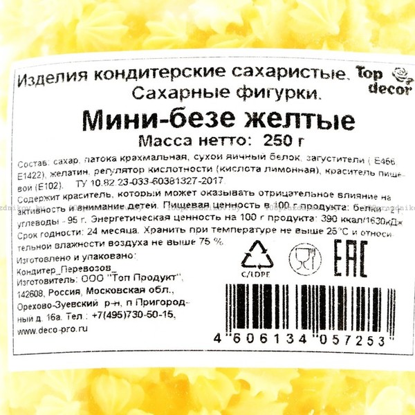 Сахарные кондитерские изделия "Мини-безе", желтые, 50 г