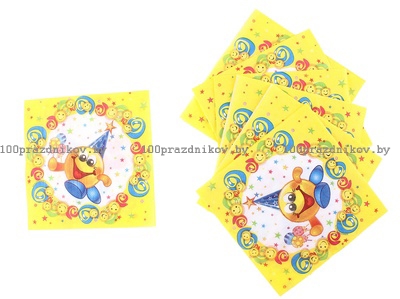 На салфетках нарисованы красивые и яркие смайлики, которые поделятся с вами своим хорошим настроением.
