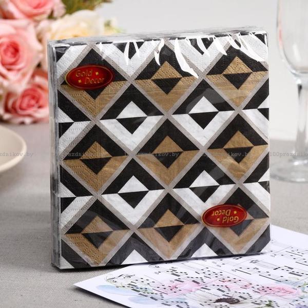 Салфетки бумажные Gold decor «Зигзаг Золото», 3 слоя, 33*33 см, 20 шт.