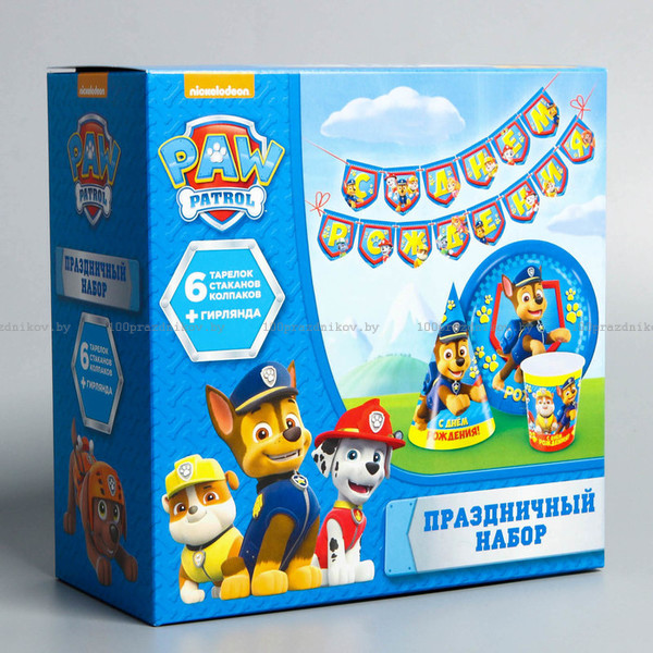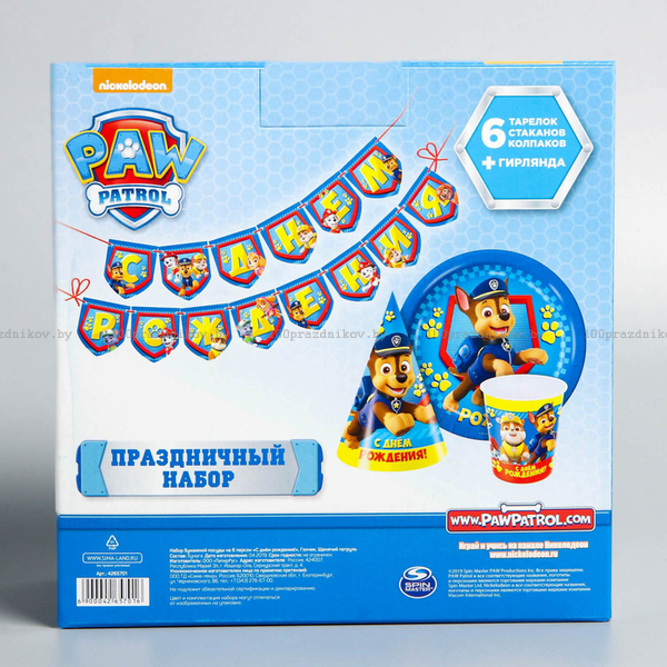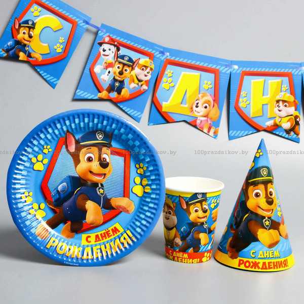Щенячий патруль. Бумажная посуда «С Днем Рождения!», набор на 6 персон, PAW Patrol