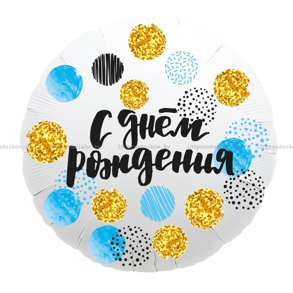 Шар фольгированный 18" «С днём рождения», круг, цветные круги