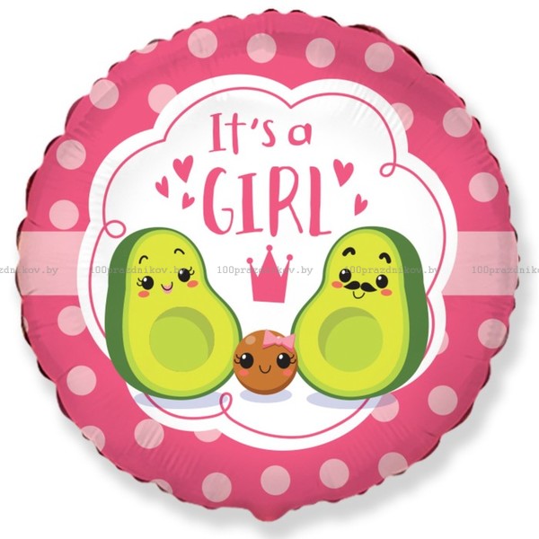 Шар фольгированный 18" «С рождением девочки!», семья авокадо, круг, розовый
