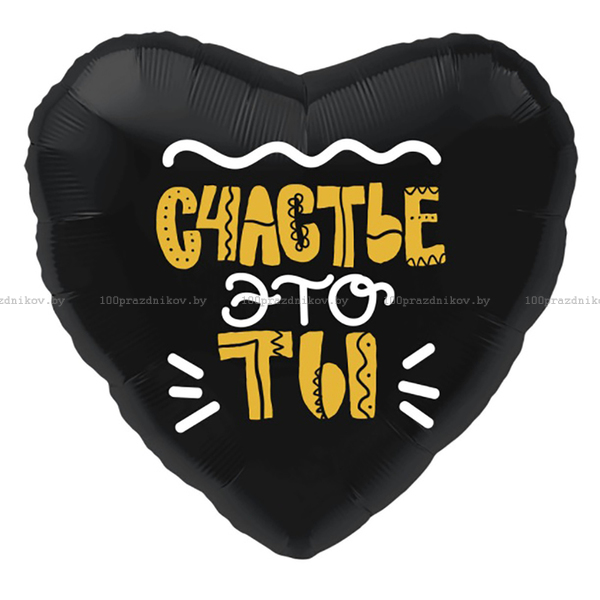 Шар фольгированный 18" «Счастье это ты», сердце, цвет чёрный
