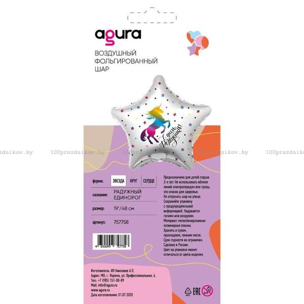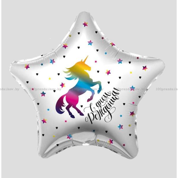 Шар фольгированный 19" «Радужный единорог», звезда, 1 шт., в упаковке