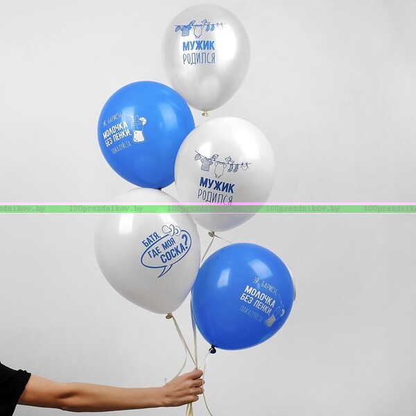 Шар латексный 12" "Мужик родился", 1 ст.,