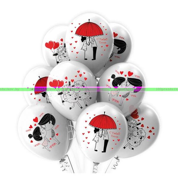 Шар латексный 12" "Романтика. Вдвоём " пастель МИКС 1ст. 2цв. ,