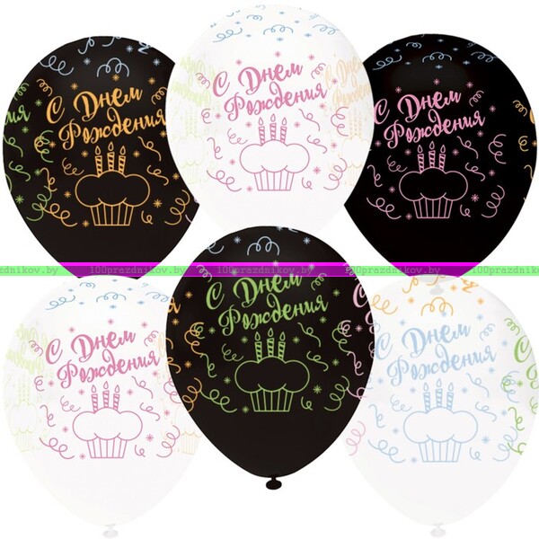 Шар латексный 12" «С днём рождения!», разноцветные кексы, пастель, флуоресцентный, МИКС