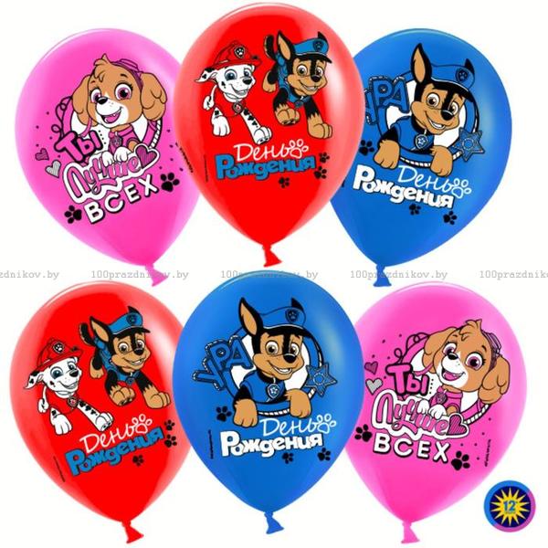 Шар латексный 12" «С днём рождения! Щенячий патруль», пастель, 1-сторонний