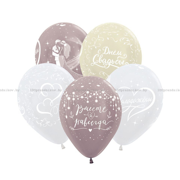 Шар латексный 12" «С днём свадьбы», 5-сторонний, перламутр
