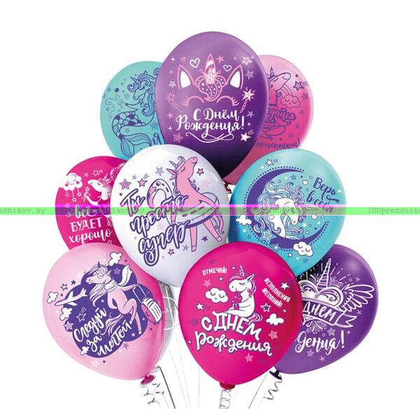 Шар латексный 12" «С ДР! Единорожка», пастель, 2-сторонний, МИКС