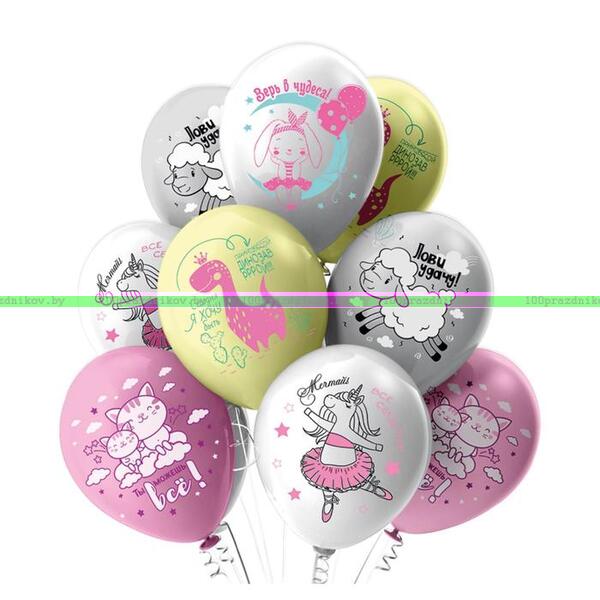 Шар латексный 12" "Верь! Мечтай! Лови удачу!" пастель МИКС, 1ст. 2цв.,