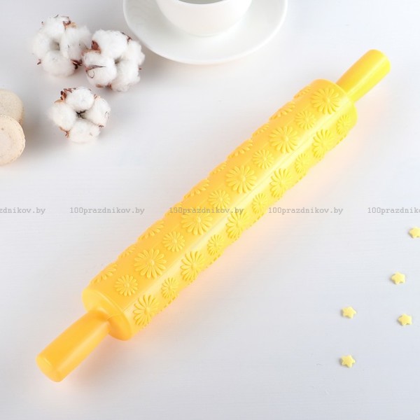Скалка кондитерская «Ромашки», 37 см, фактурная, цвет МИКС