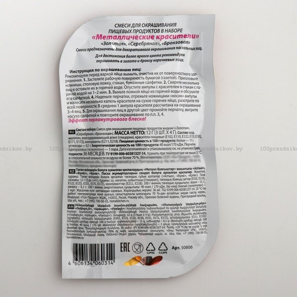 Смеси для окрашивания пищевых продуктов «Металлические красители», 3 цвета