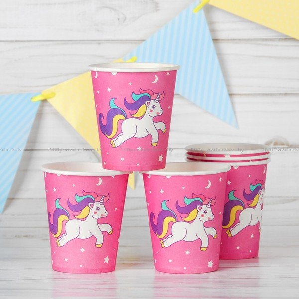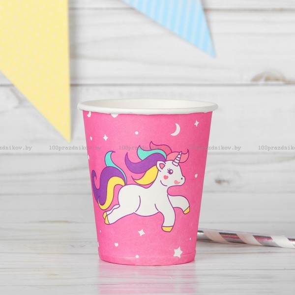 Стакан бумажный «Единорог и звёзды», набор 6 шт., 220 мл, цвет розовый