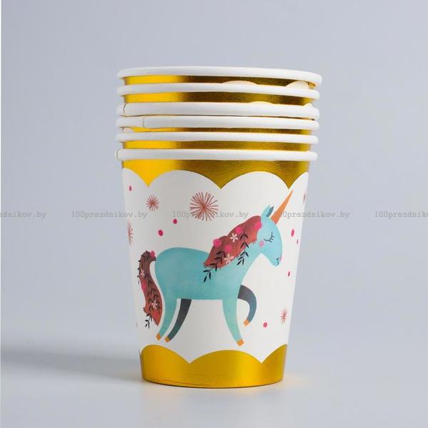 Стакан бумажный «Единорог», набор 6 шт., тиснение