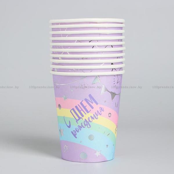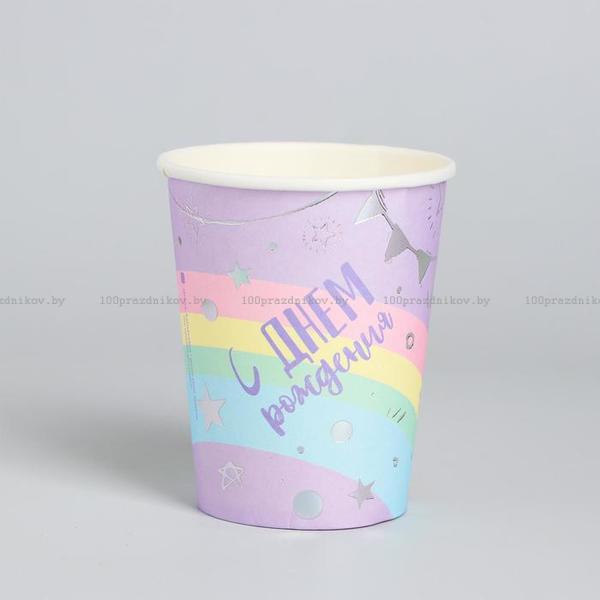 Стакан бумажный «С днём рождения», 250 мл, тиснение серебро