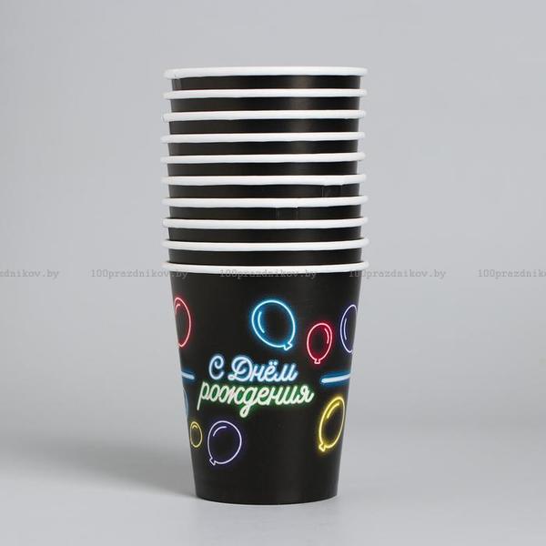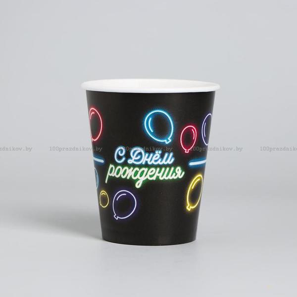 Стакан бумажный «С днём рождения», неоновые шары, 250 мл