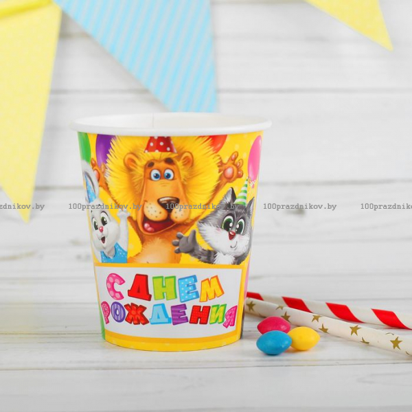 Стакан бумажный «С Днём рождения», весёлая компания, 250 мл, 10 шт