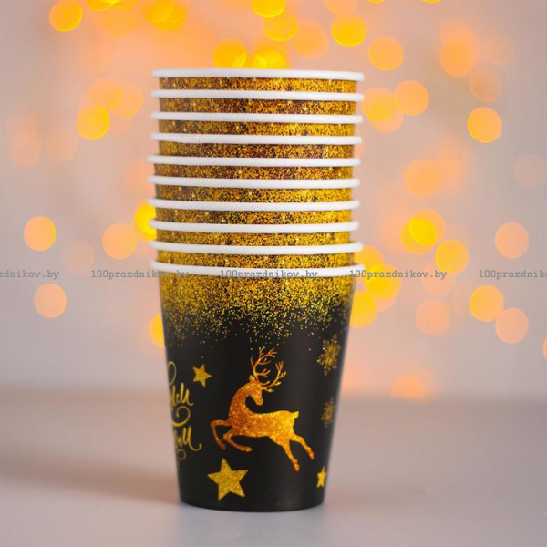 Стакан бумажный «С Новым годом», золотые олени, 250 мл, 10 шт