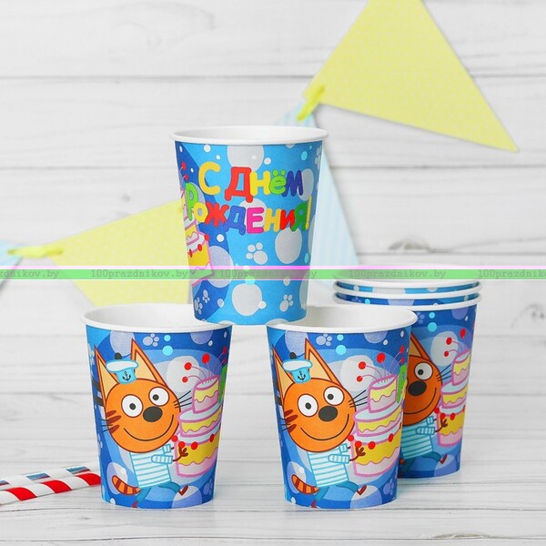 Стакан бумажный «Три Кота», 180 мл, 1 упаковка 6 шт., цвет синий
