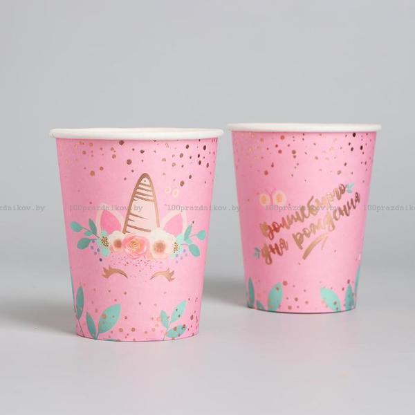 Стакан бумажный «Волшебного дня рождения!», 250 мл, тиснение розовое золото