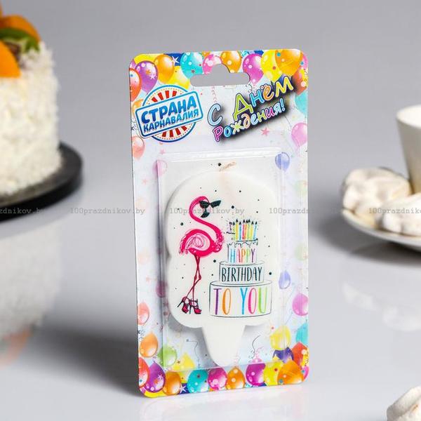 Свеча для торта "С Днём Рождения, Гламурный фламинго", 5×8.5 см