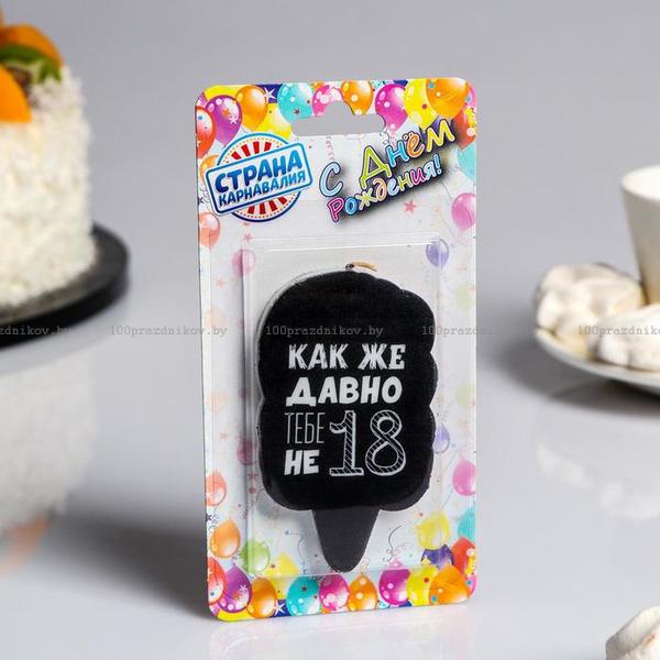 Свеча для торта "С Днём Рождения, Как же давно тебе не 18, с приколом", чёрная, 5×8.5 см