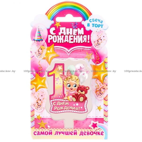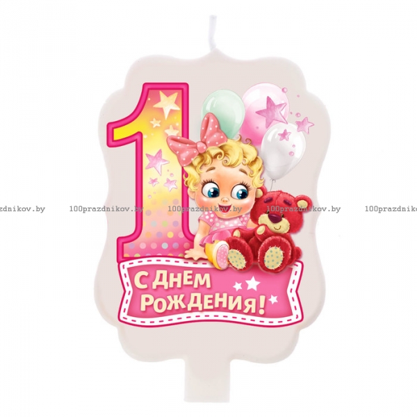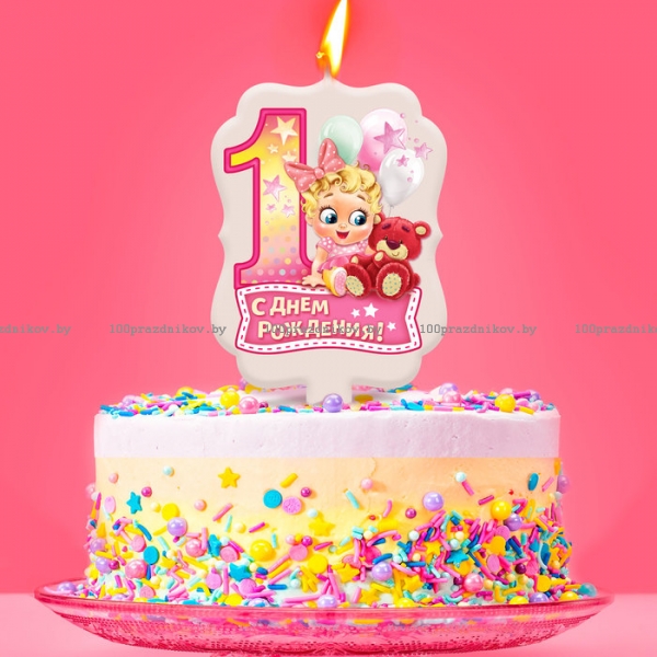 Свеча для торта цифра «1 годик, девочка» "1" розовая
