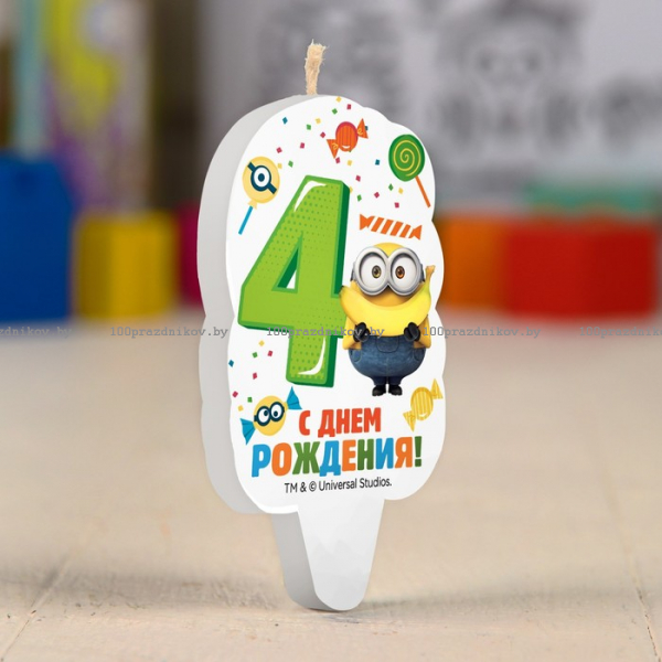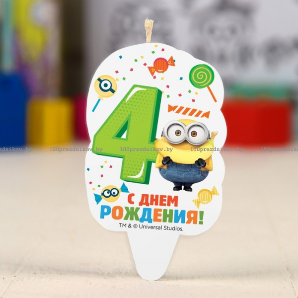 Свеча в торт цифра 4, Гадкий Я, 5 х 8,5 см