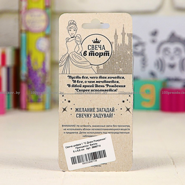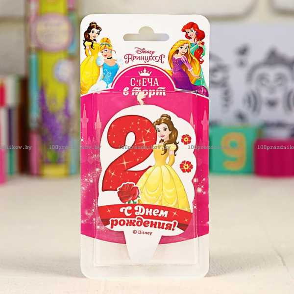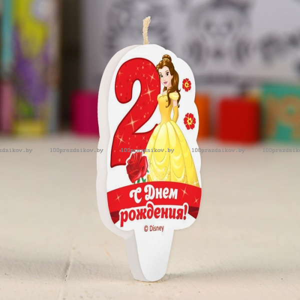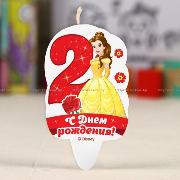 Свеча в торт цифра Дисней 2 "С Днем Рождения", Принцессы: Белль
