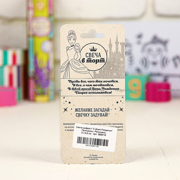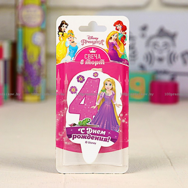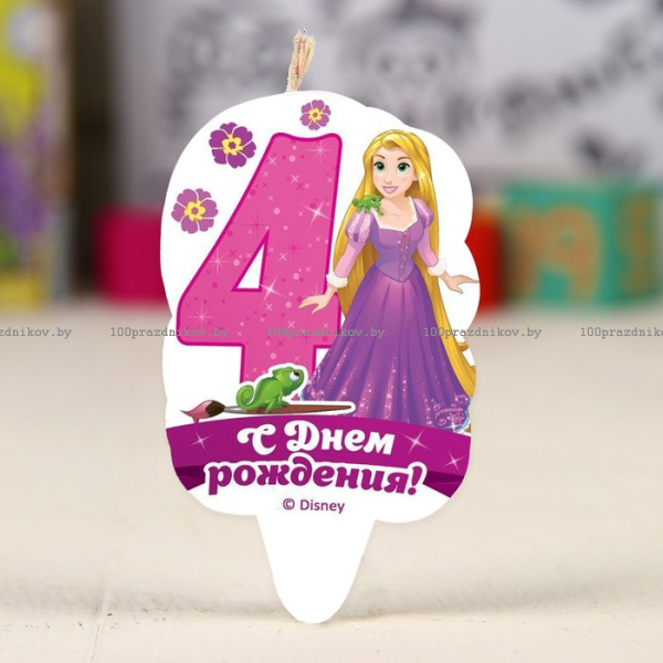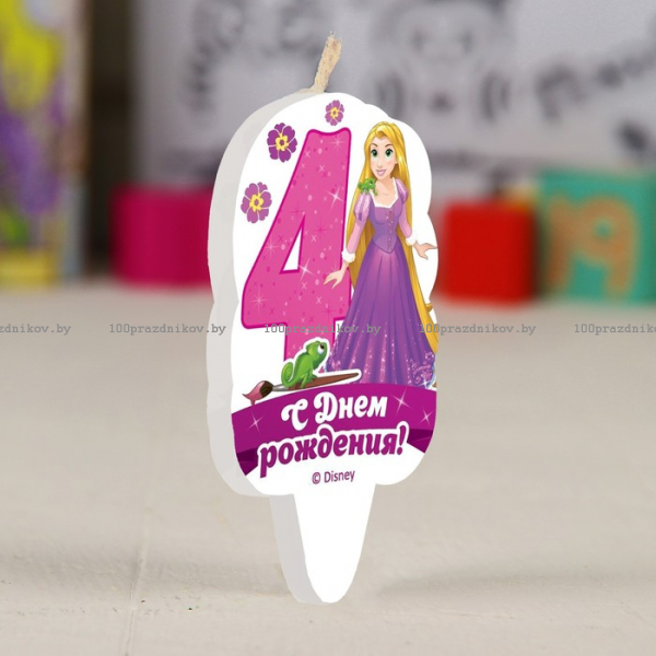 Свеча в торт цифра Дисней 4 "С Днем Рождения", Принцессы: Рапунцель