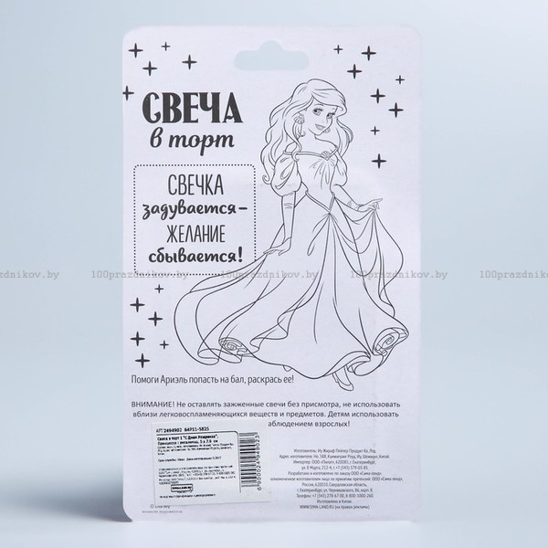 Свеча в торт Дисней 1 "С Днем Рождения", Принцесса : русалочка
