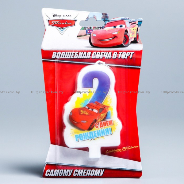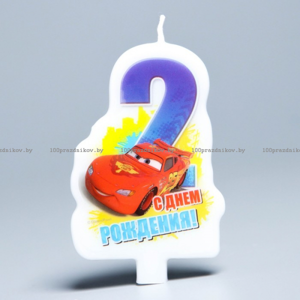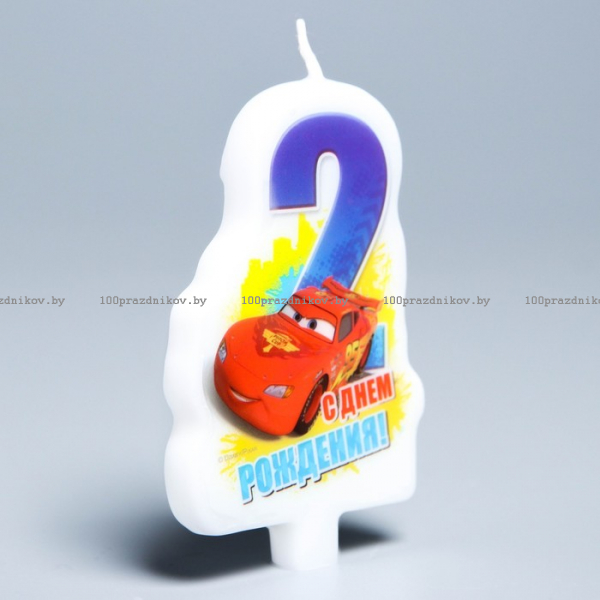 Свеча в торт Дисней "С днем рождения" цифра 2 Тачки