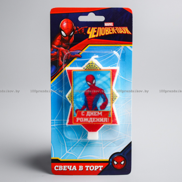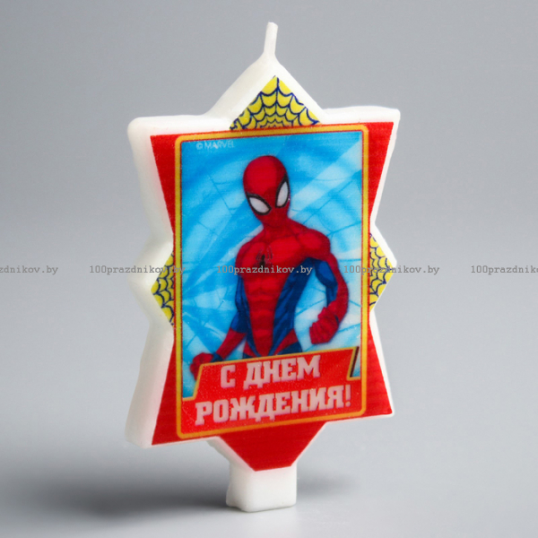 Свеча в торт "С Днем Рождения!", Человек-паук