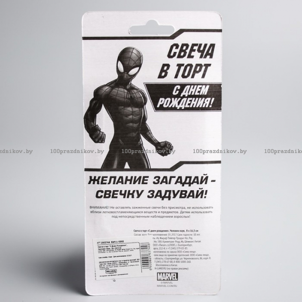 Свеча в торт "С Днем Рождения", Человек-паук, 8 х 16.5 см