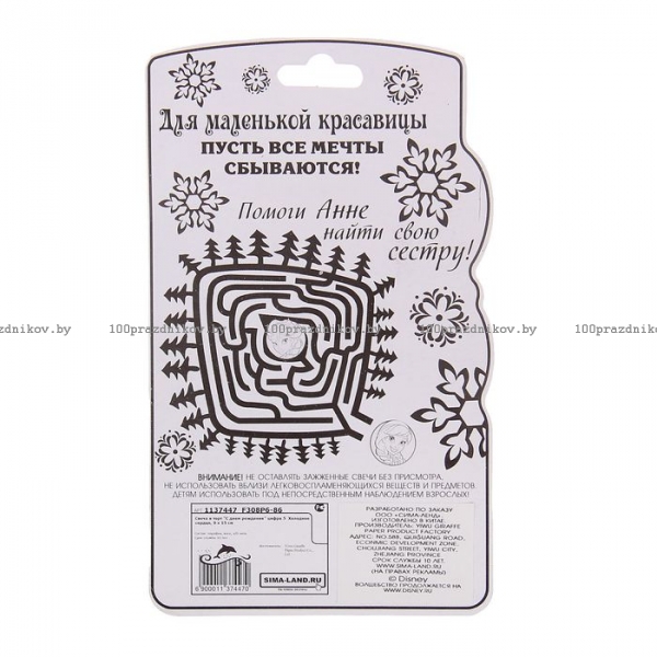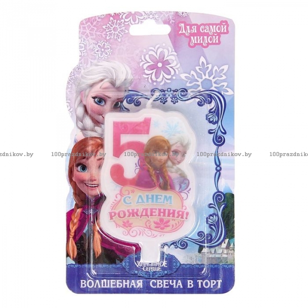 Свеча в торт "С днем рождения", цифра 5, Холодное сердце