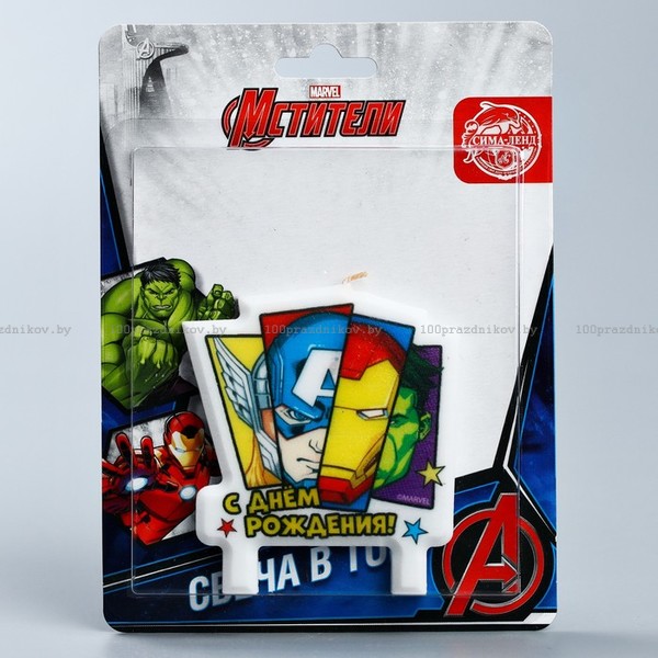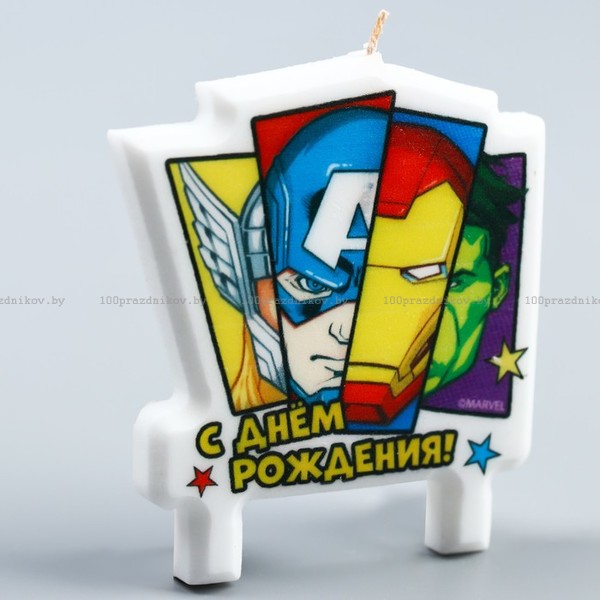 Свеча в торт "С Днем Рождения!", Мстители Марвел, 8×8 см