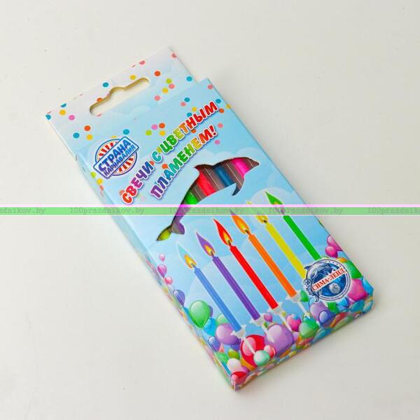 Свечи в торт "Цветное пламя", 6 см, набор 6 шт