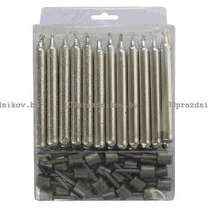 Свечи в торт Серебряные блестками 24 (12+12)шт с держателями 6 см